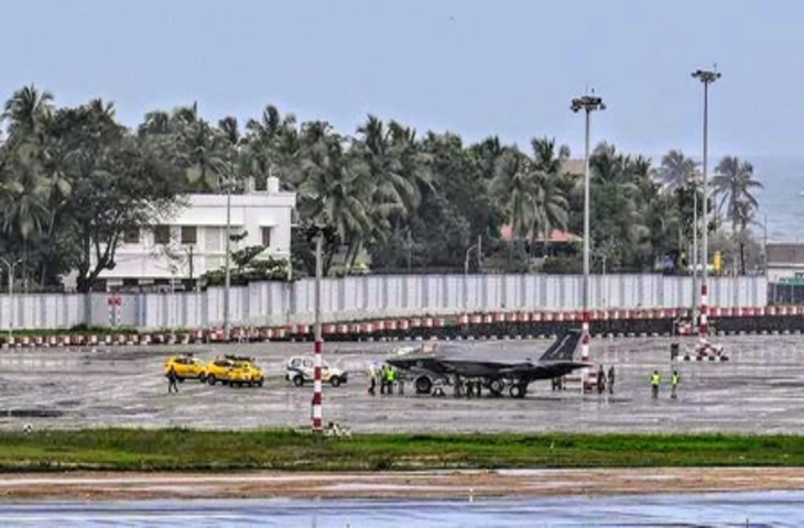 एफ-35 ने रात करीब 9.30 बजे एयरपोर्ट पर सफलतापूर्वक लैंडिंग की।